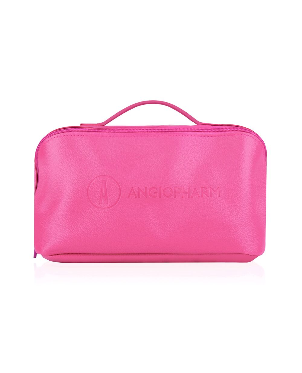 Объемная косметичка из экокожи с логотипом ANGIOPHARM удобна для хранения предметов личной гигиены и средств по уходу за лицом и телом. Практична в поездках и на отдыхе, сохраняет форму и легко помещается в сумку